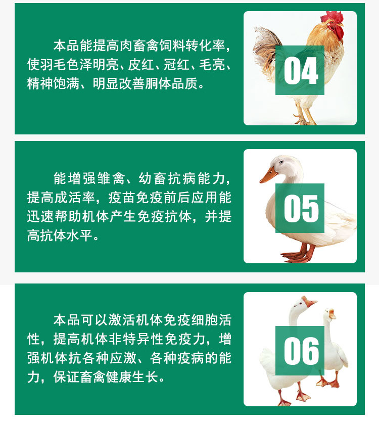 3、增進食欲,促進生長,明顯提高日增重,提高生產效率。