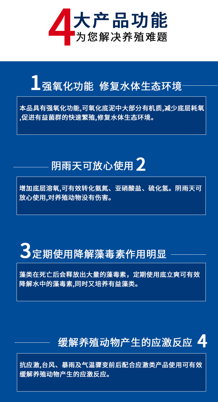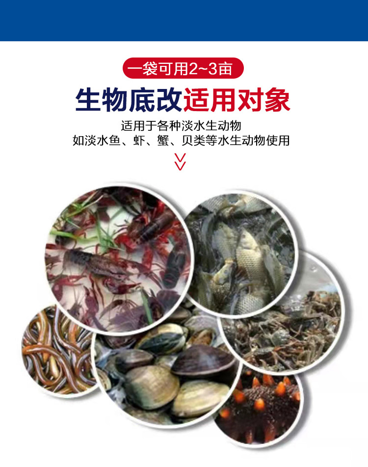 分解池底沉積的殘餌、糞便、動植物尸體等有機物,同時分解底層厚積 生物淤泥。生物改底幫你解決難題。" />