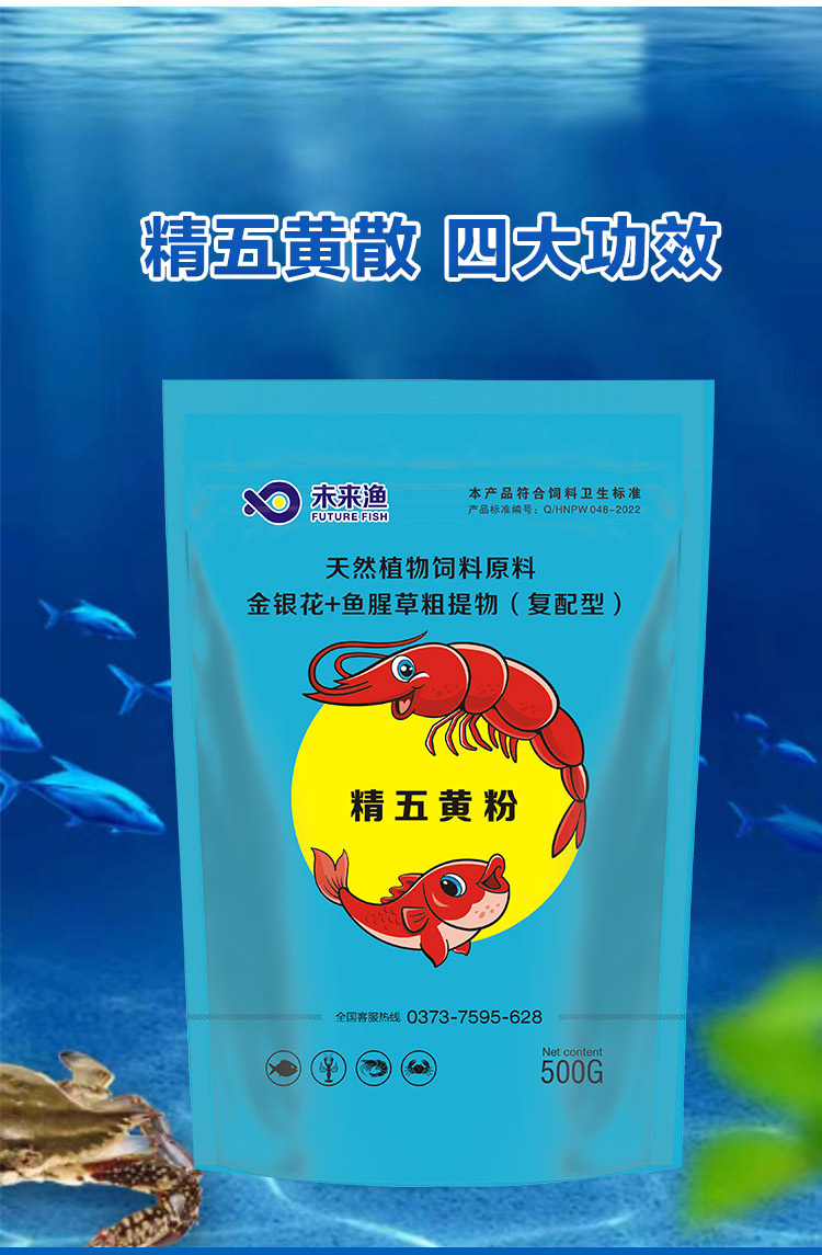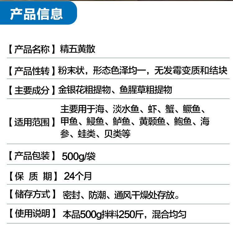 產品簡介:精五黃粉 清熱解毒 保肝利膽 腸炎爛鰓 增強體質 水產養殖常備