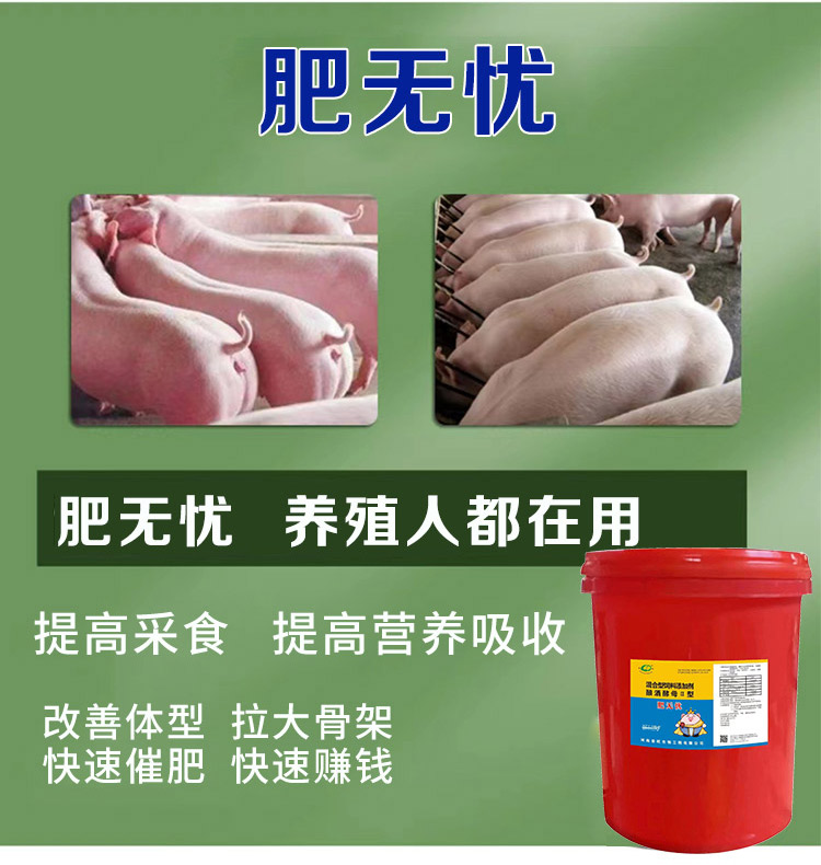 第三:全程添加肥無憂(降本增效)∶養(yǎng)到300斤體重,全程用肥無憂的比不用的多長30斤以上。(降低發(fā)病率,降低用藥量,降本增效,提高養(yǎng)殖效益,每斤豬至少降低1元的養(yǎng)殖成本)。