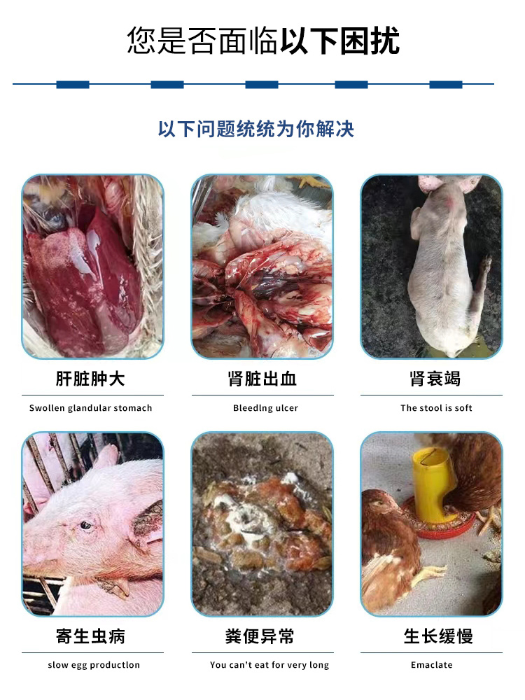 防治家禽因各種疾病、飼料霉變、代謝等原因引起的肝、腎腫大、出血、尿酸鹽沉積等癥狀有很強的防治功效,快速修復肝腎受損細胞,恢復肝腎健康代謝功能,具有清熱解毒,疏肝利膽,瀉肝膽實火,理氣健脾,保肝護腎,增強免疫等功效。