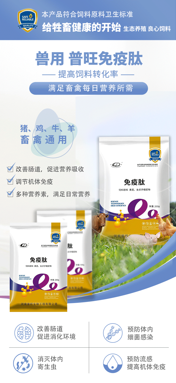 產(chǎn)品簡介:提高家禽免疫機(jī)能,降低發(fā)病率,調(diào)節(jié)免疫系統(tǒng)從而保持腸道微生態(tài)平衡,營養(yǎng)價值高,促進(jìn)消化吸收。