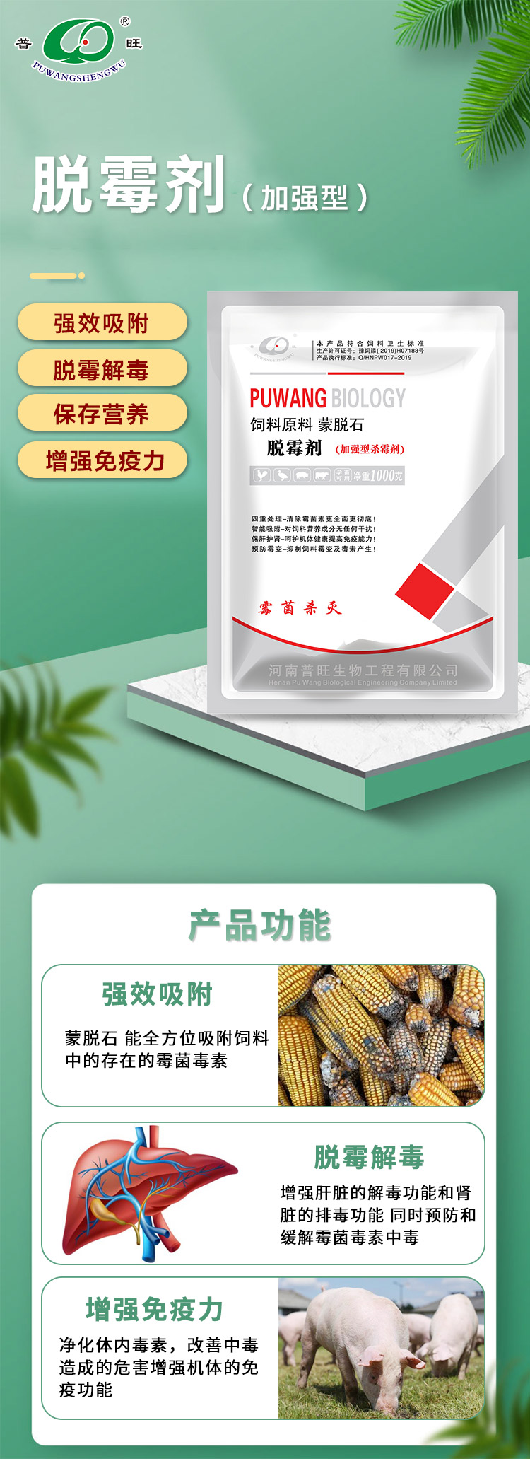 【使用說(shuō)明】本品適用于黃曲霉毒素、玉米赤霉烯酮、嘔吐毒素等各種霉菌毒素污染的豬飼料、禽料、牛料。